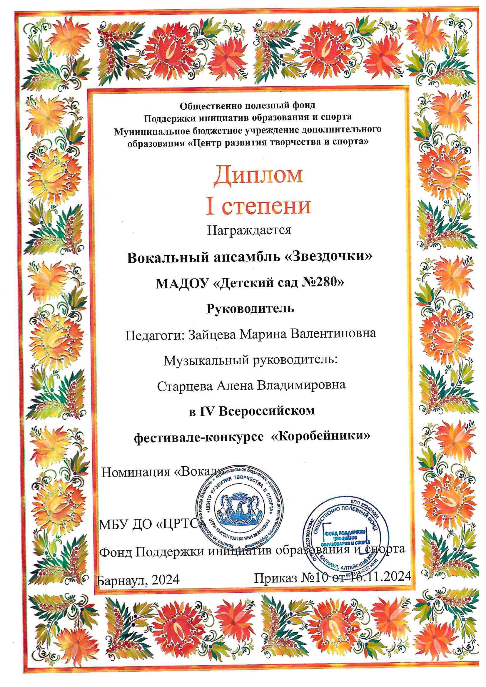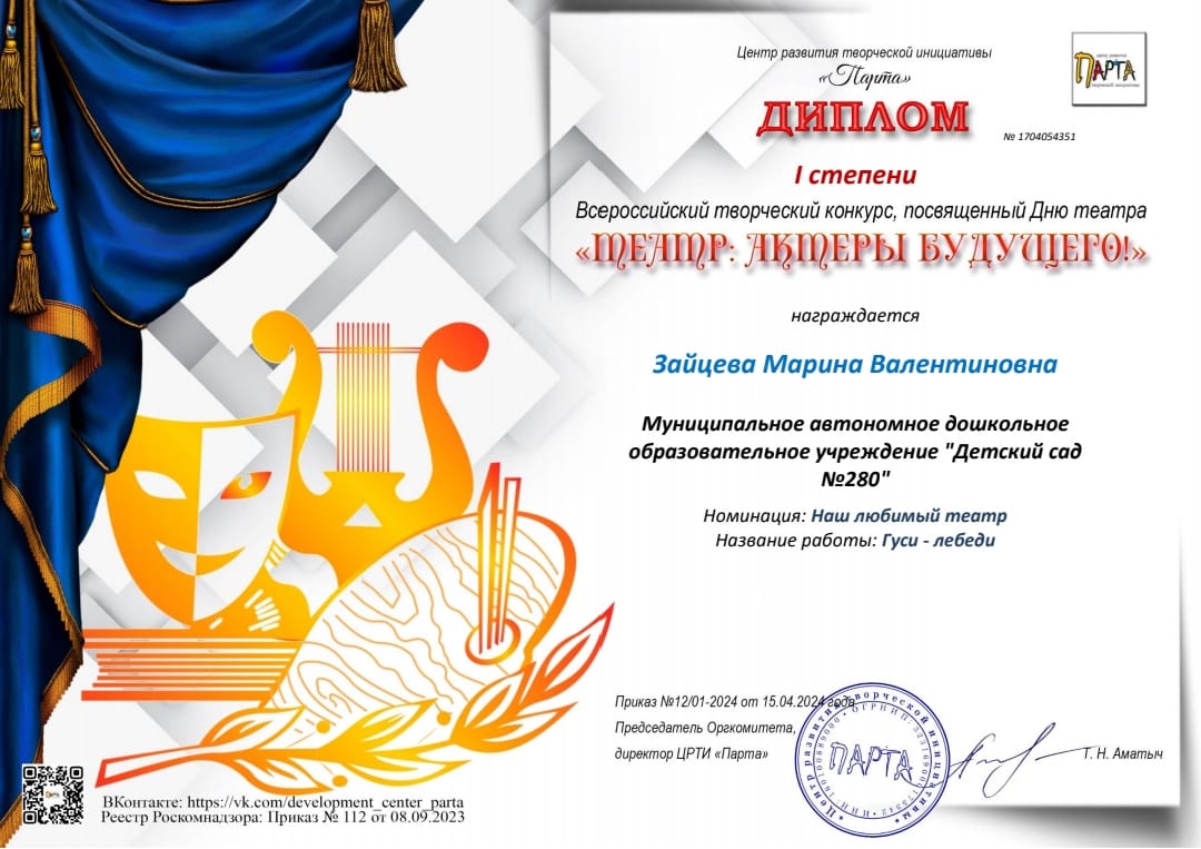 КГБУ ДПО «АИРО им. А. М. Топорова», 2023, «Развитие личностного потенциала в системе взаимодействия ключевых участников образовательных отношений», 144 ч.